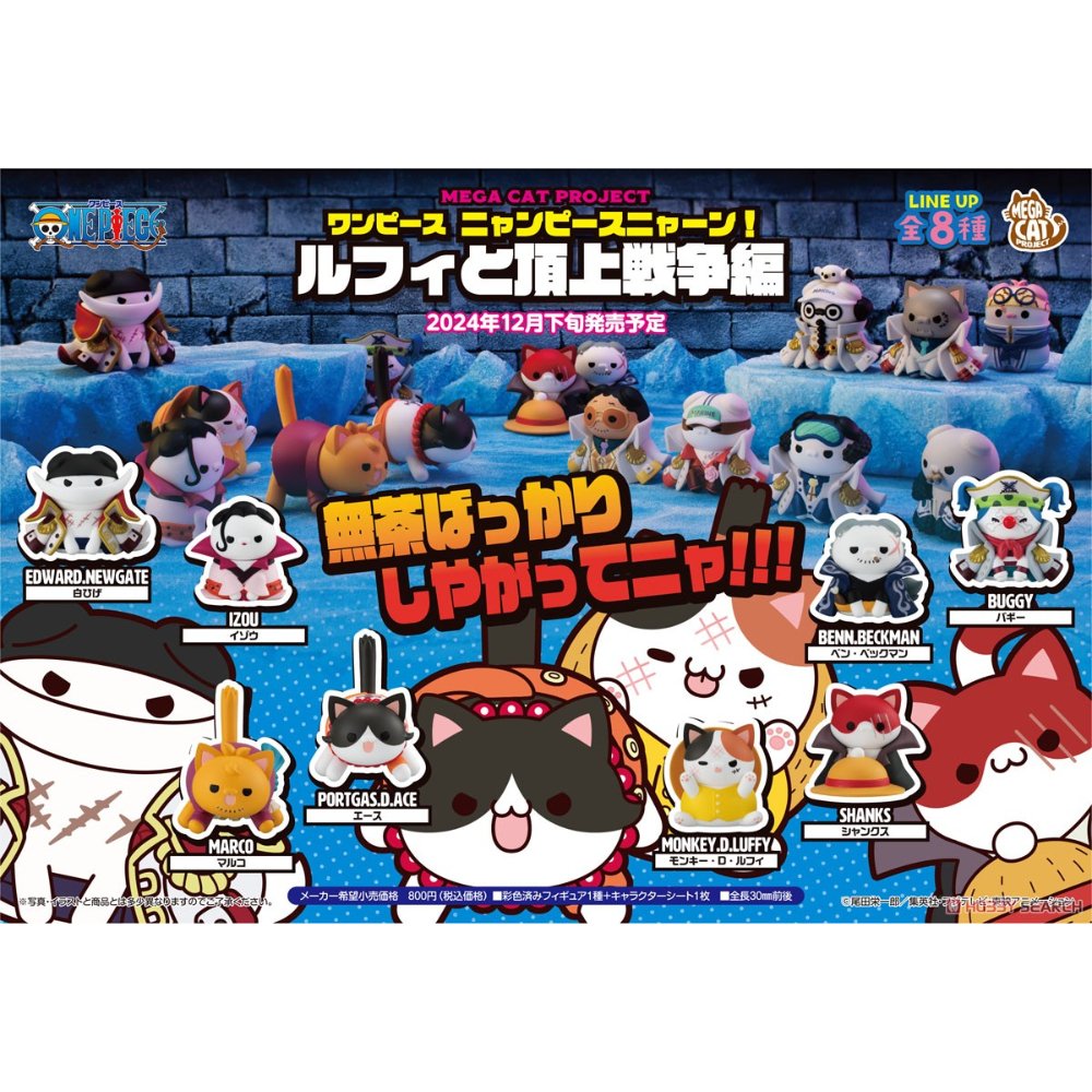 MegaHouse nos trae una nueva entrega del “Mega Cat Project”, donde los héroes y piratas de One Piece se transforman en gatitos listos para la guerra . Esta vez, la colección está inspirada en el Arco de la Guerra de Marineford, con tus personajes favoritos en versión felina y más adorables que nunca.